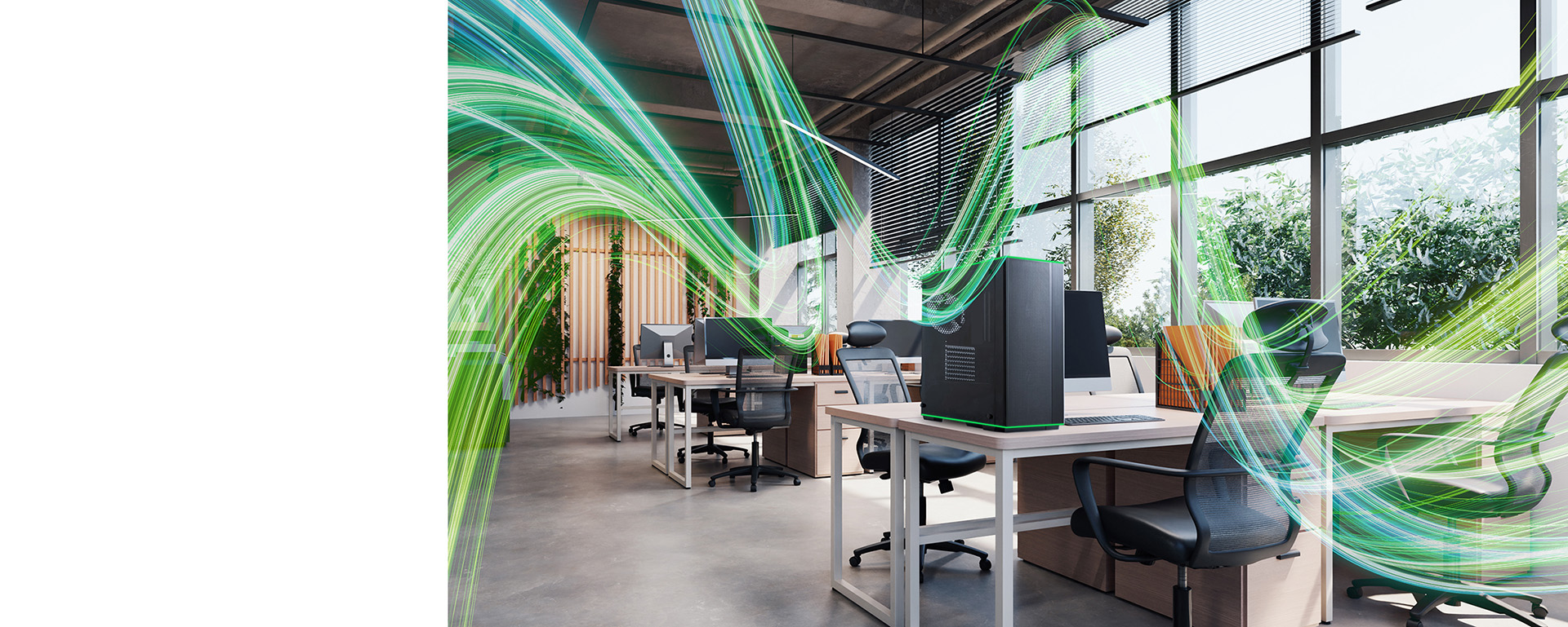 最新・高性能GPUを2基搭載。オフィスにもおける静音性と100V給電。